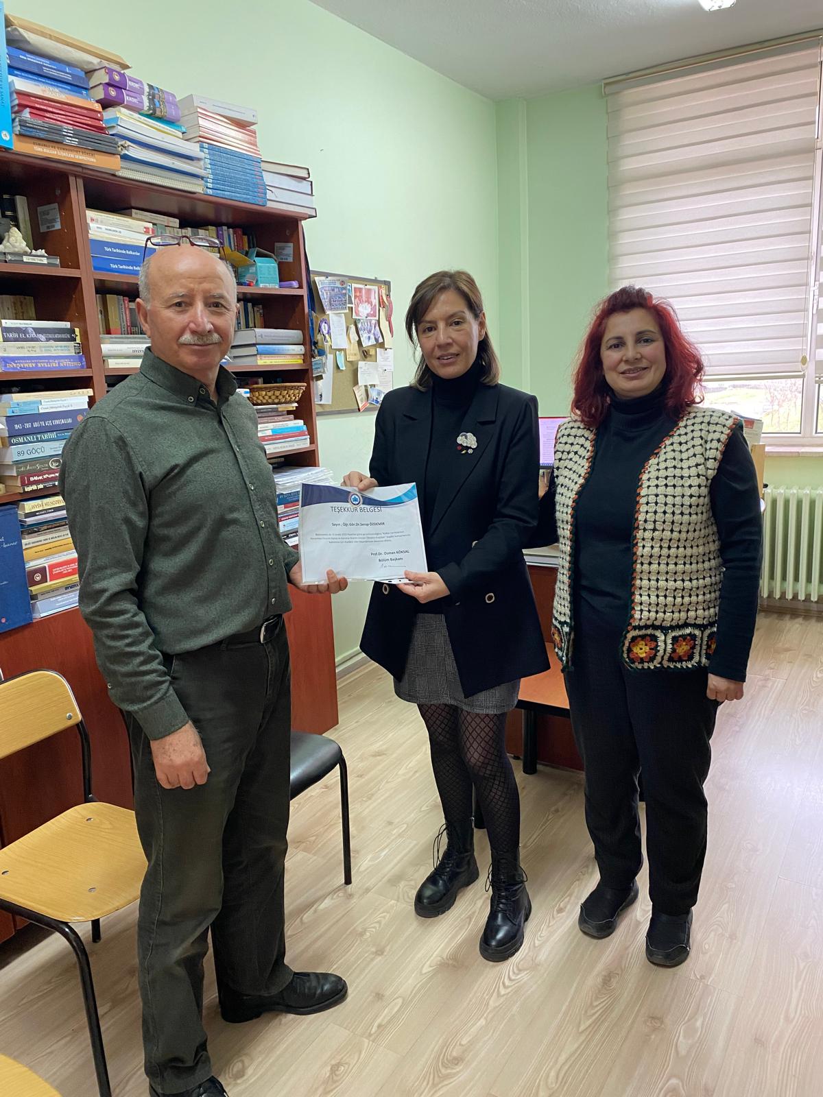 Bölümümüz 02.12.2025 tarihinde öğretim üyelerinden Doç. Dr. Şeyda Büyükcan Sayılır Eskişehir Fatih Fen Lisesi öğrencileriyle Türk tarihi söyleşisi gerçekleştirmiştir.